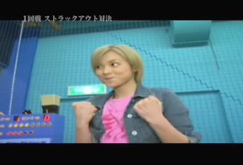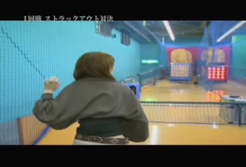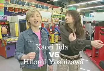 The two girls are in an arcade of some sort. There is a target with numbers, and the purpose is to throw a baseball and hit one of the numbers on the target. Kaori throws four balls but only hits the target once, for a 9.