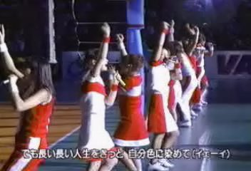 They perform the song at some sports event where Japan has a team playing. They are acting as cheerleaders in addition to being performers.