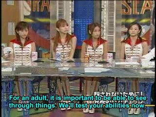 The first thing they are presented with is a salesman hawking three items, but one of the three doesn't exist. The first is a roll-up piano keyboard, the second a robot, and the third w heart-shaped watermelon. The girls have to guess which one does not exist, and they guess wrong. It's the watermelon.