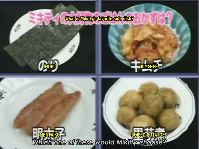 In the first part, the other members have to guess which food is the one she hates the most, and not choose that one. If they are wrong (and pick the one she hates), they are eliminated from the contest. It turns out she hates the boiled potatoes.
