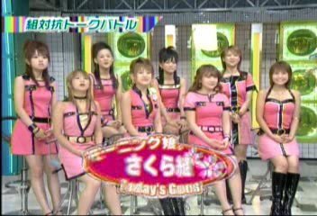 A couple of interesting things about this program. First, they seem to be having a lot of fun. It seems much more upbeat than corresponding U.S. programs. Secondly, for some reason, there is U.S. music playing in the background (I recognized one song from Madonna, for example). The only Japanese music consists of the three Morning Musume songs and the closing credits.