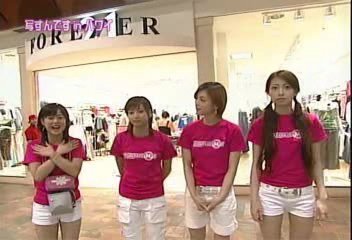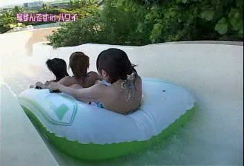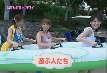 This seems to be about a visit by Morning Musume to Hawaii in 2004. They divide up into groups, with one group concentrating on shopping and one group concentrating on water ride parks and one group going fishing.