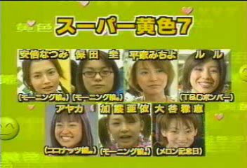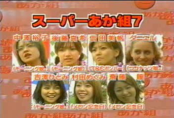 The group of Morning Musume members and some other girls are divided into three somewhat uneven teams.