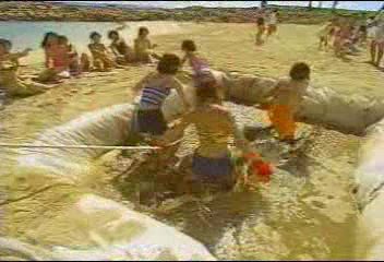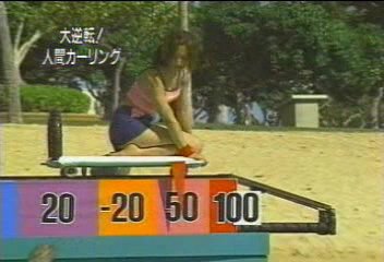 In this contest they push a girl on a board and hope she stops with the pointer on positive points