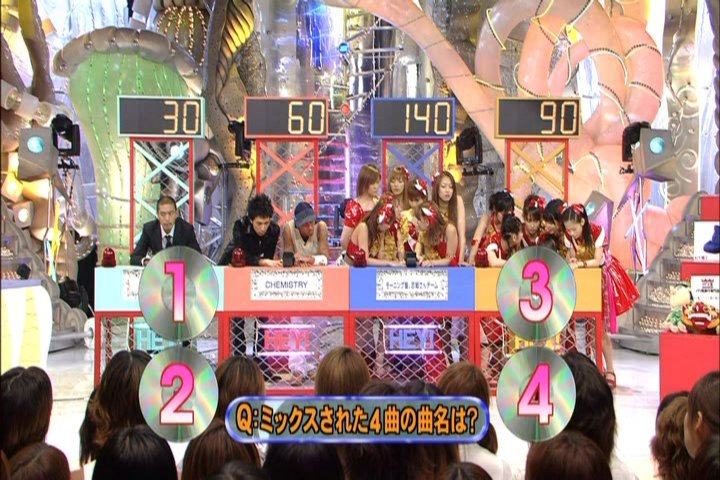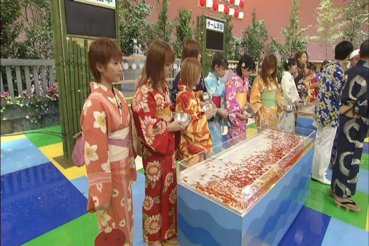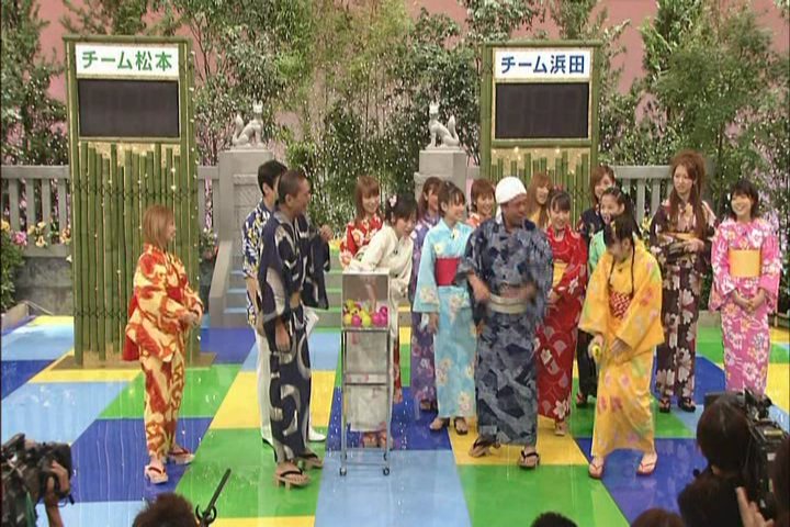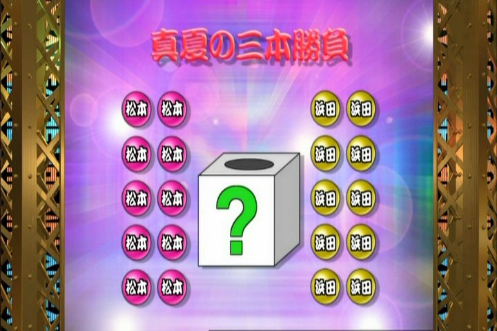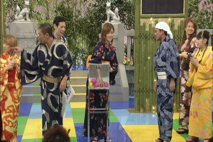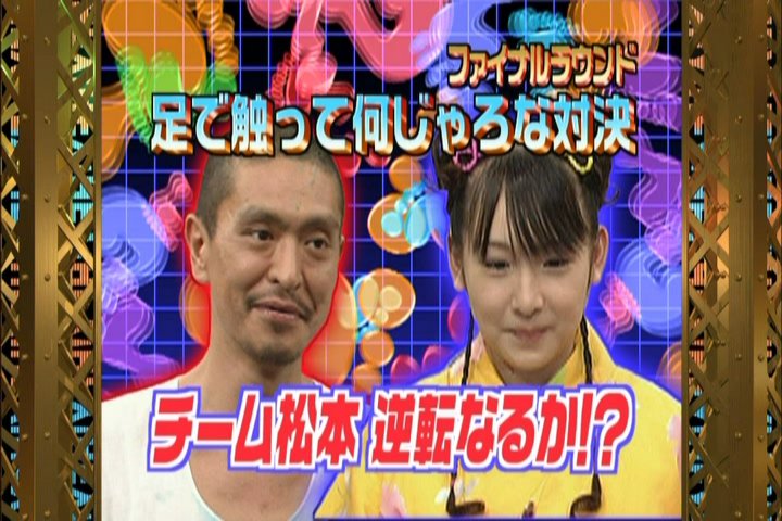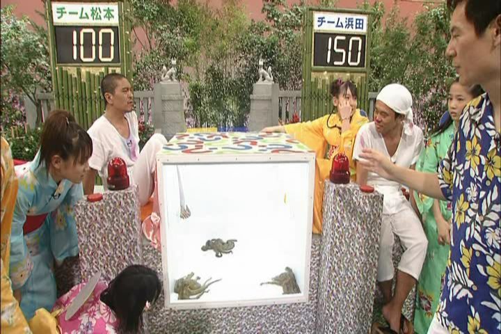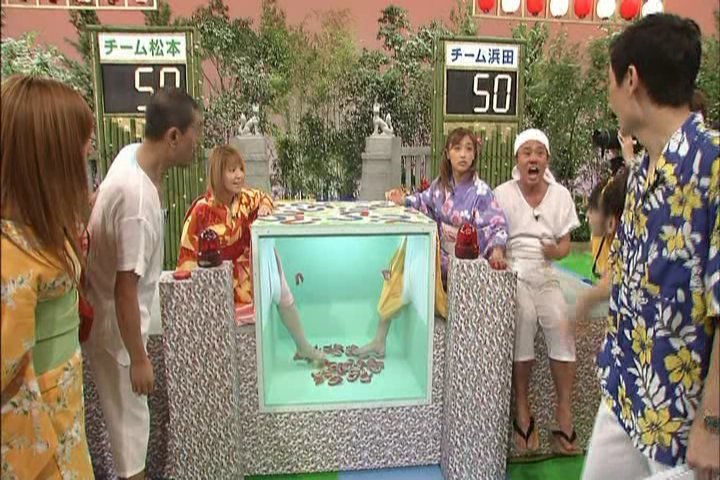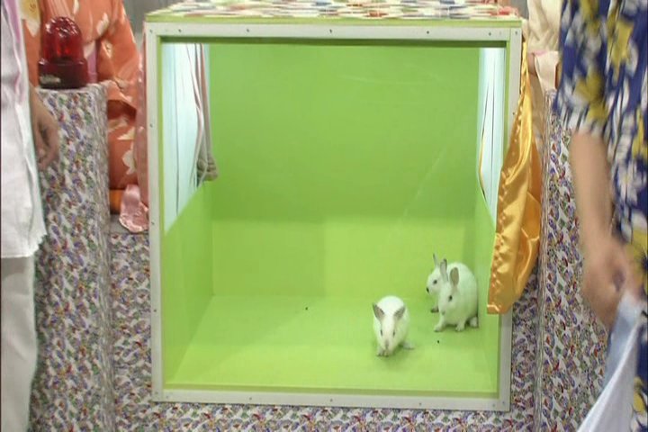 A rabbit runs by Natsumi's Abe's foot and apparently touches it, freaking her out totally. The right-hand team guesses correctly.