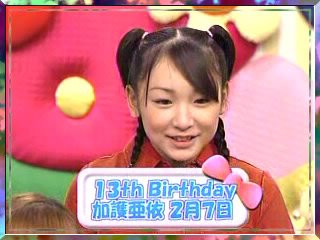 Definitely one of the most kawaii members, Kago Ai seemed to be one of the two main mischief-makers of the group. In a couple of the Ayaka's English Lessons she was seen helping herself to food that wasn't necessarily meant for her. She seemed to really like to eat and whenever she would lose a contest in a Hello Morning program that involved food as a prize you could always see the disappointment on her face.