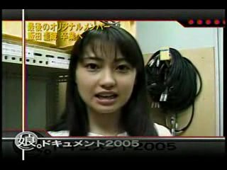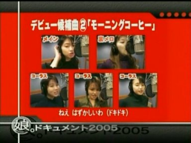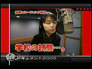 This clip covers a lot of things; her ASAYAN vocalist audition; the Sapporo preliminary round; a trip to a temple with 11 finalists to learn a particular song; her loss in the competition, but then she was called back with four others; Tsunku told the five (who would eventually become the first Morning Musume generation) that if they sold 50,000 copies of their cd single they would become an “official” group. They had to do the work themselves, but they managed to do it. Later parts of the clip deal with the recording of Morning Coffee.
