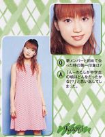 Kaori is one of the most attractive of all the members of Morning Musume. It's also very interesting to watch her on the bus skit versions of Hello Morning since she seems to really enjoy the acting that she's doing. In a way she reminds me of Cher for some reason.