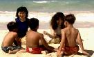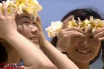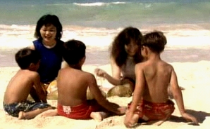 The fifth song differs considerably from the others. Whereas the others were basically rather somber, this one is plain fun. It opens with both women buried in sand on a beach. They end up chasing some young kids and playing with them, receiving leis, learning how to do the hula and, most different of all, smiling.