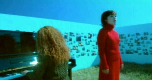 The last song is also a very beautifully sung song. The two girls are in front of a long l-shaped wall that has lots of photos on it. Now, since I speak very, very little Japanese, I'm not sure just what the song is about technically, but it seems to be one girl singing about a love interest that she left.