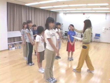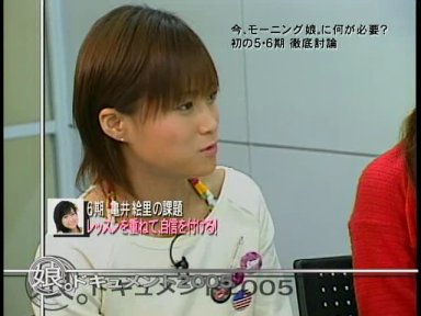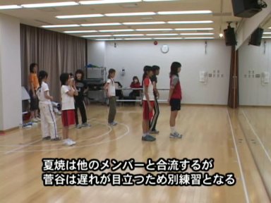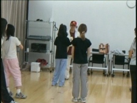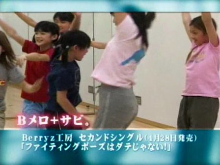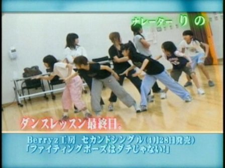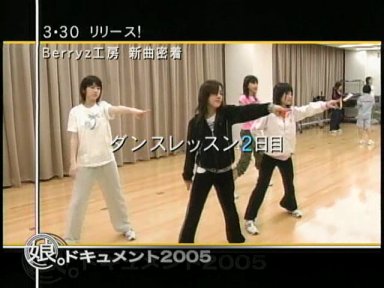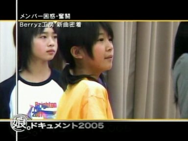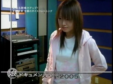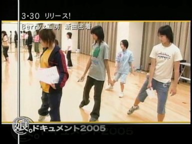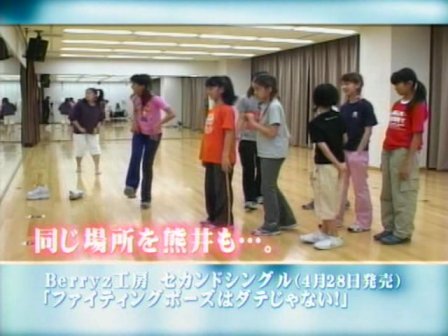 Asami Konno is having some voice training. One girl in the Berryz Kobo group is spoken to about something wrong with her dancing. She cries and is led out and when she returns several of the of the other girls in the group try to reassure her.