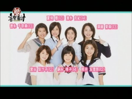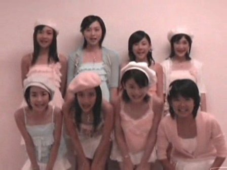 A group of younger members, this one consists of Saki Shimizu, Momoko Tsugunaga, chinami Tokunaga, Maasa Sudou, Yurina Kumai and Risako Sugaya.