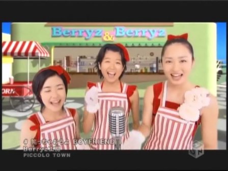 This parody of fiftie's type music works really well. The voices of the girls blend well together, the background singing matches the spirit of the song, and the video itself is ultra cute. One of their best songs, in my opinion. Back to start of Morning Musume section |