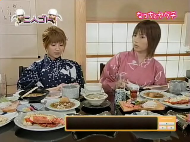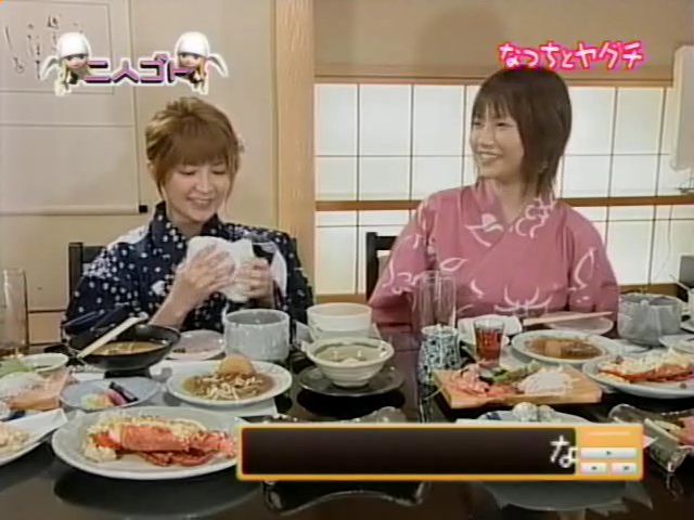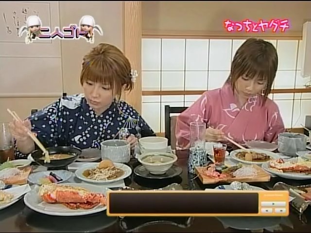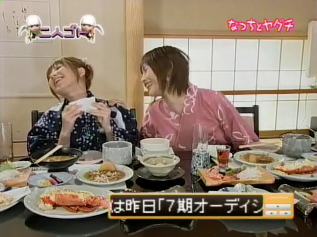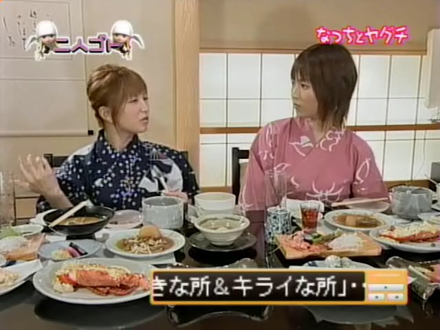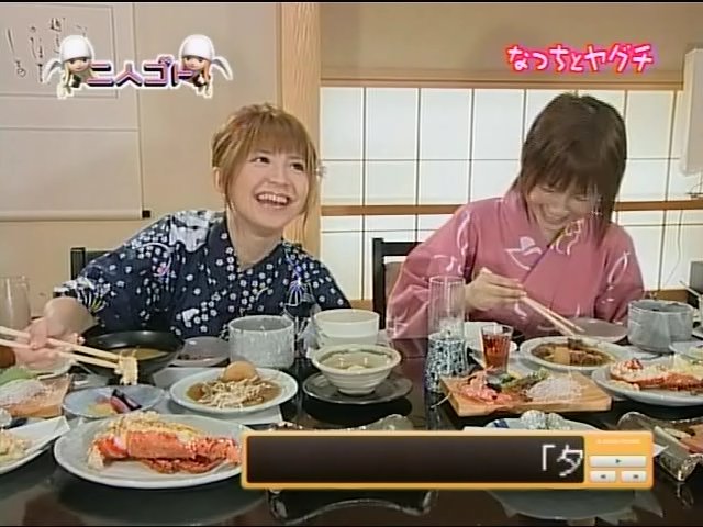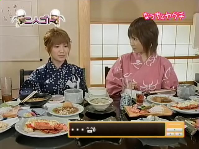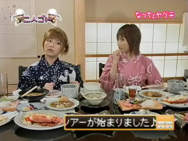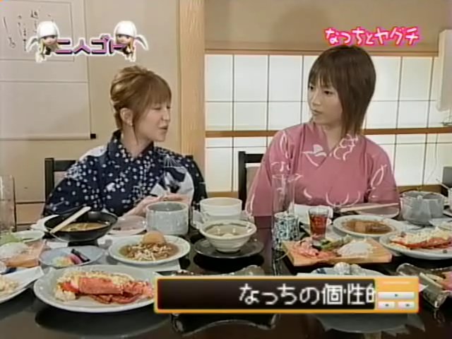 This particular series (and I'm missing episode 106) has Mari Yaguchi and Natsumi Abe eating together. They have at least five if not six dishes each, not counting the rice. It's much more than either of them can eat, I think. The series is not translated, so I have no idea what they are talking about.