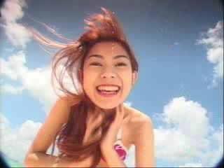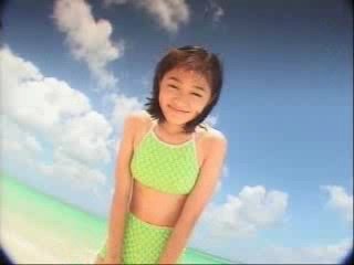 To be sure none of the directions are left lonely, Maki Goto throws her's about 45 degrees to the right of the plate.