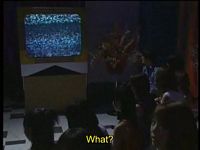 This is getting more confusing. Abe Natsumi and two guys are watching what is going on via television screens.