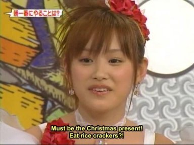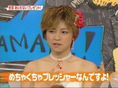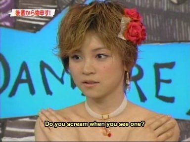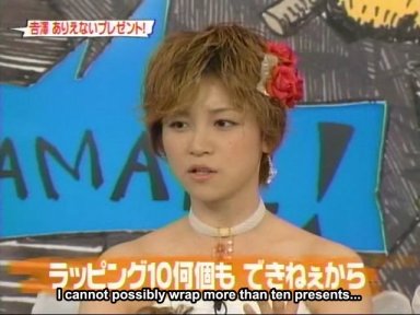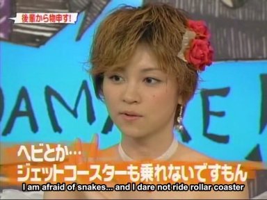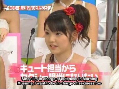 Apparently this appearance was only days before Mari Yaguchi announced she was leaving Morning Musume. This relates to the picture in a tabloid of her with her boyfriend.