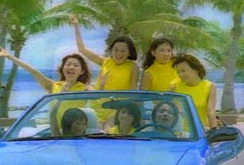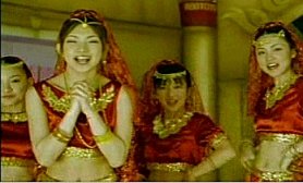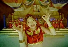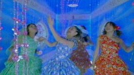 10. Happy Summer Wedding: This one takes strange to new levels. It opens with the girls in Indian belly-dancing outfits (sort of a continuance from the previous song but at a more sedate pace) (actually, not really sedate, but almost anything would be sedate by comparison to the previous song), but also ends up showing the girls in hick-type outfits and some type of ceremonial outfits. The tune itself is actually quite funny, the music basically hilarious in parts. The best way to describe it is that it's a fun song.