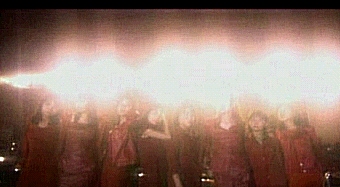 5. Memory seishun no hikari ("Memory, the Light of Youth") : This one just doesn't seem to work. First off, it reminds me of many X-Files episode; everything is so dark it seems like someone forgot to pay the electric bill. The singing is just not up to par; at times it actually is so dissonant it grates on ones nerves. The rapping portion (in English by male rappers) doesn't seem to add to the video, either. It's just sort of there, not really related to everything else. This is the rare Morning Musume song that I just don't like at all.