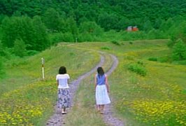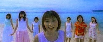 7. Furusato ("Hometown") . This is a very sedate song with a strong air of sadness about it. There are many beautiful scenery sights along with various baby pictures of some of the Morning Musume members. It's a nice song, but there is one annoying thing, and that's the over-repetition of a sound which reminds me of an R2-D2 beeping noise; it is dissonant with the general tone of the song and gets to be annoying very quickly, distracting from the overall impact of the video.