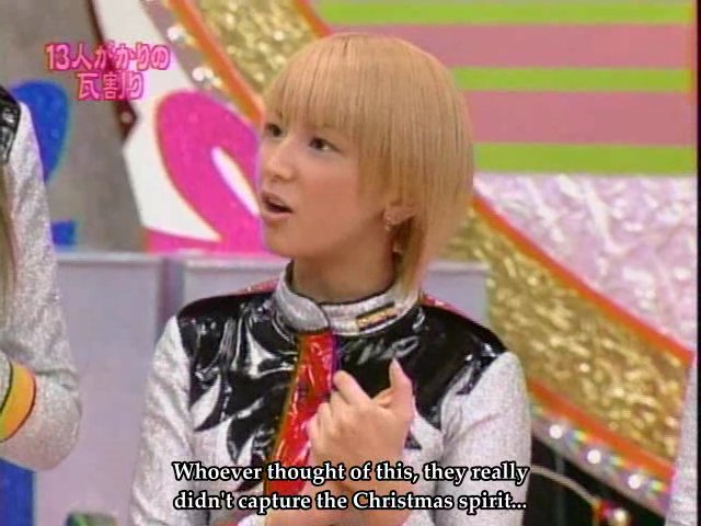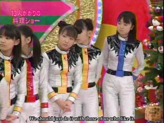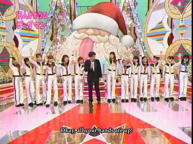 They then have another round of shots, another fake argument between Yossie and Ishikawa, etc. They're calling this a Christmas "special"? The only really interesting thing about it is that the girls are doing (mostly) a good job of acting the part of being mad (though some of them are obviously having a hard time avoiding laughing).