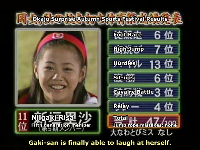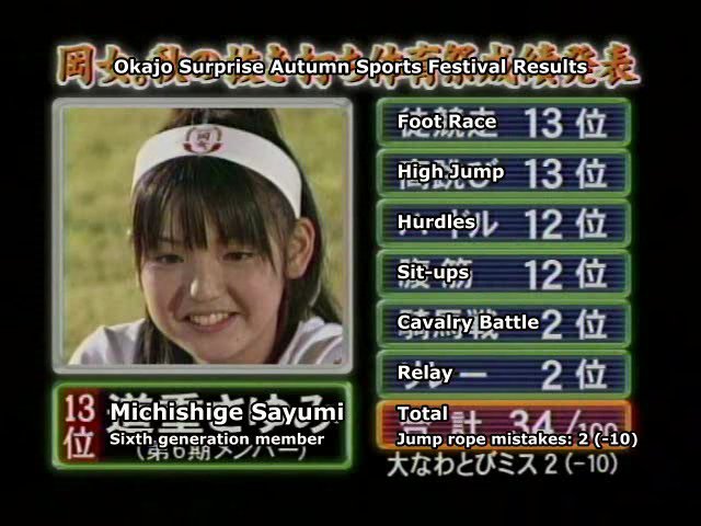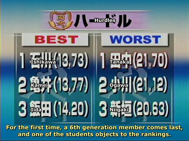 12th place, then 13th , leaving it up to Yoshizawa Hitomi or Kago Ai to be the "crap girl" of the contest.
