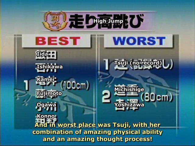 Yoshizawa reacts to the Hello Pro Kids giggling at what is going on. Yoshizawa takes 14th place.