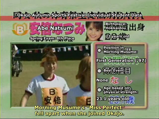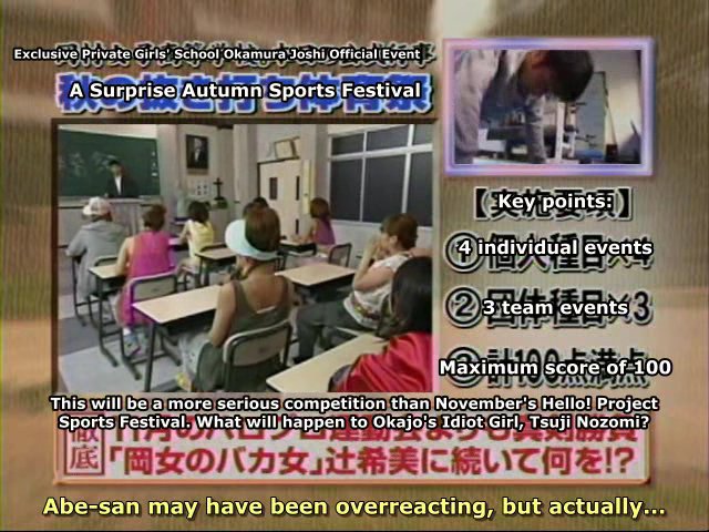 The basic concept is that Morning Musume is tricked into taking part in an athletic festival. This one takes place after the Mechaike Bakajo Kimatsu Test episodes, by the way.