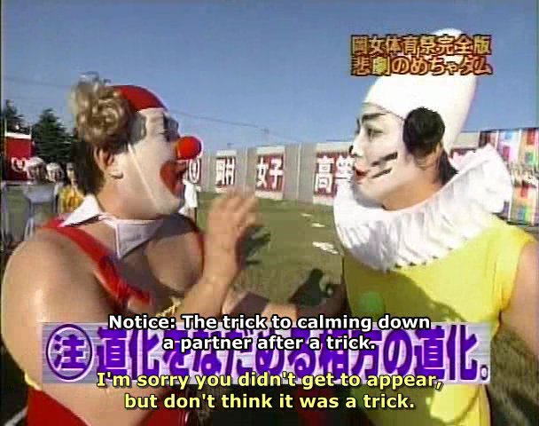 Where it gets out of hand (in my opinion) is when the "angry" clown chases the Morning Musume girls, more than one of them seriously scared by what is going on.