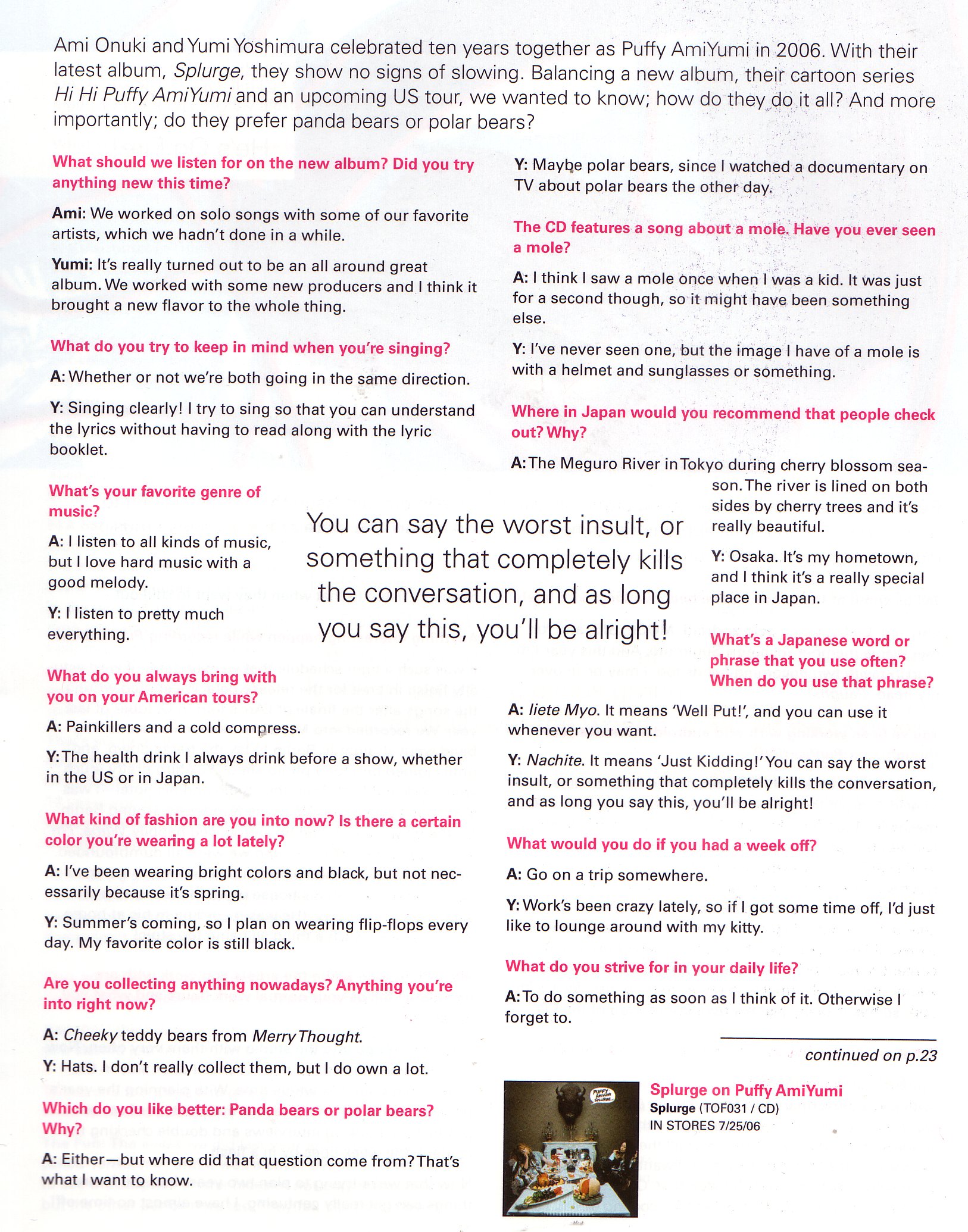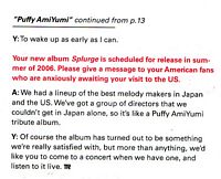 I got really, really lucky and was able to attend a Puffy AmiYumi concert. It was the first concert I'd been to in a while and I had never been to the place before, so I didn't know what to expect. I went with a friend and he said there would probably be a “swag” table there which sold merchandise. There was, and again I got lucky. The first thirty copies of their new cd (which hadn't actually been released yet) had been autographed, and I got a copy, along with a copy of Nice and Illustrated History, plus two fans.