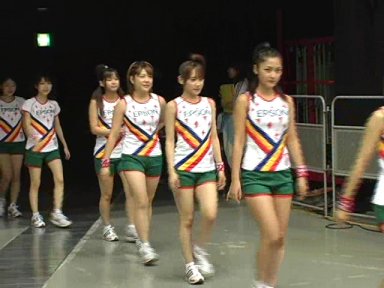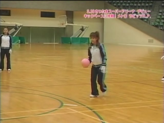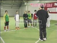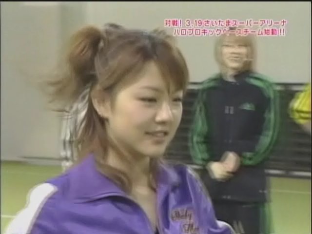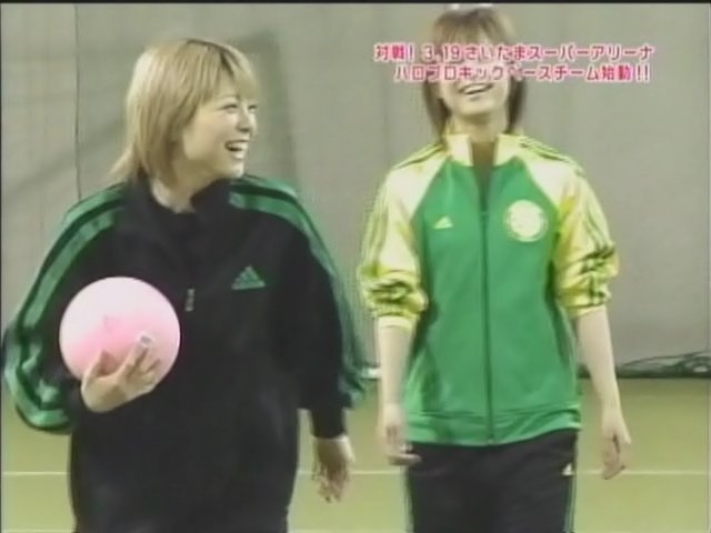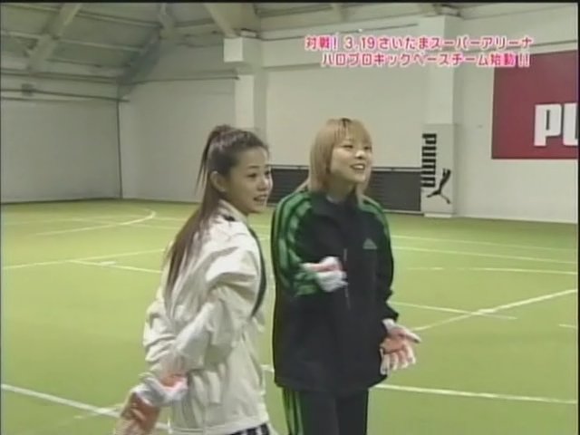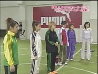 A little over six minutes of the girls going through some soccer practice. The person in the white shirt in the middle of the second shot is the guy who coaches the Hello Project team.