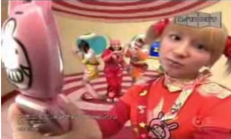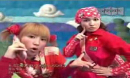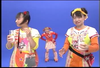 This is somewhat like a karaoke version of the song. They're shooting against a blue screen and in one place you can see the marks on the floor for where they are supposed to be standing. Once when they're dancing going backwards Yaguchi trips and falls. Whatever they were drinking, presumably milk, must not have tasted very good at all since every girl that tried it made a terrible face afterwards.