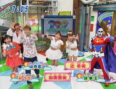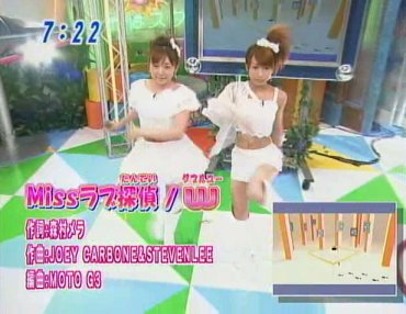 Doing "Miss Love Tantei". They get maybe two or three notes out before the show descends into rather stupid chaos.