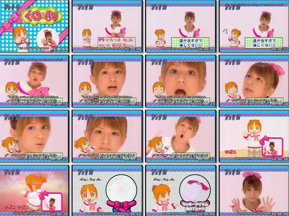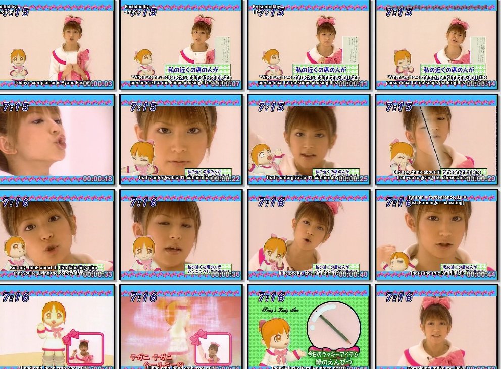 This is a series of short segments that ran on the program “Oha Star.” People send in their complaints to her and she gives them advice.