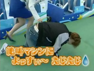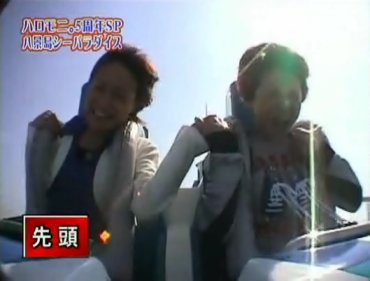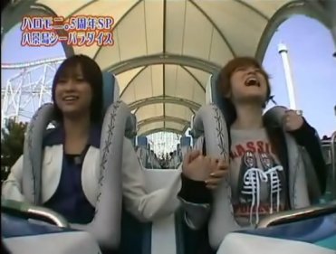 Natsumi Abe is freaking out and the thing just started moving. Yasuda Kei is having a ball.