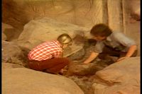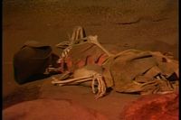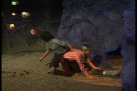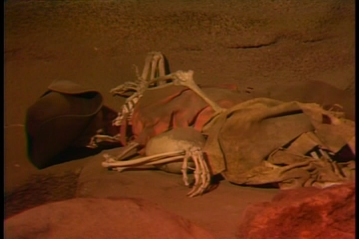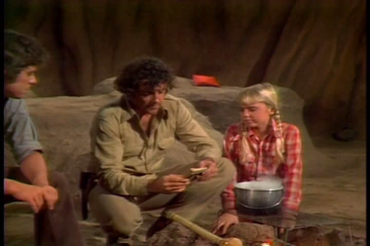 They find a skeleton in the lava pit. The lava is rising and the air is getting warmer, which will bring the Sleestak out of their dormancy.