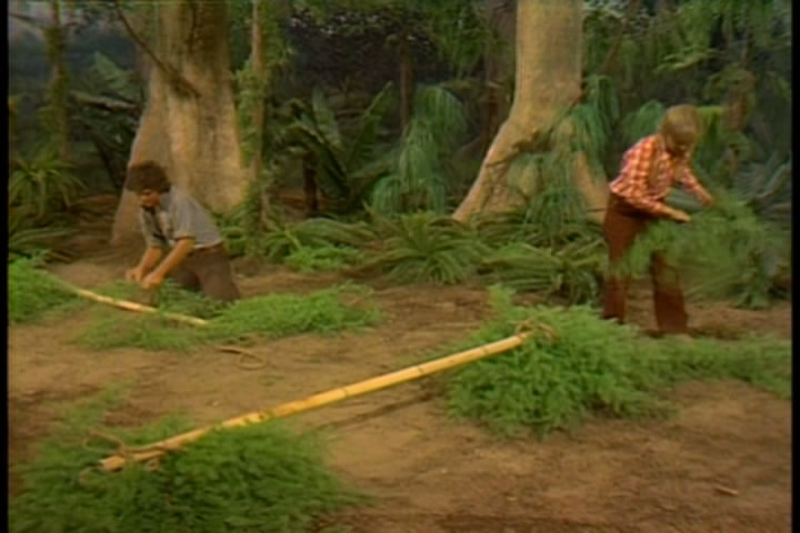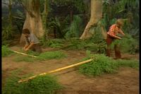 They're pulling up some kind of plant that has an effect on dinosaurs like catnip has on cats.
