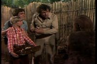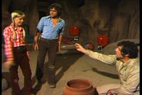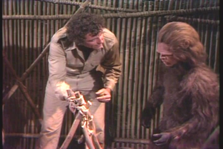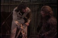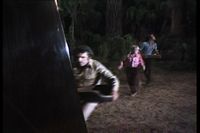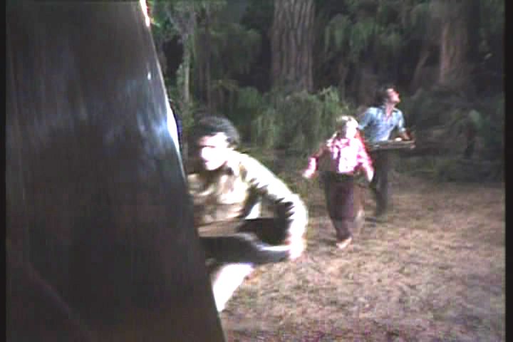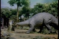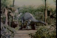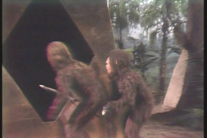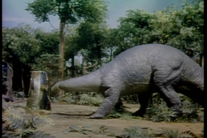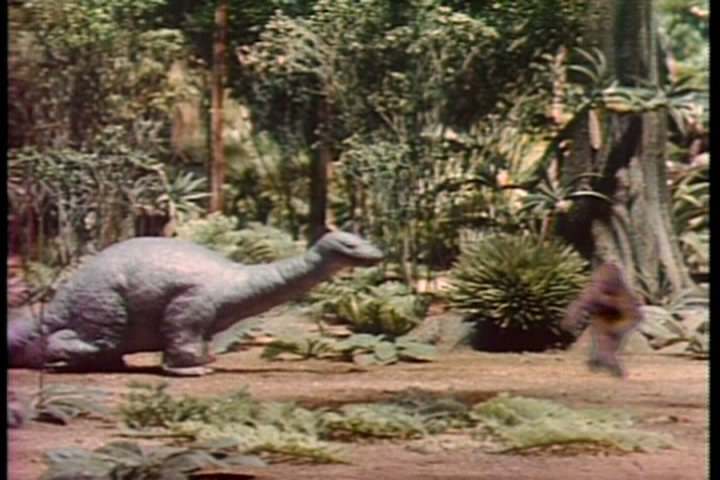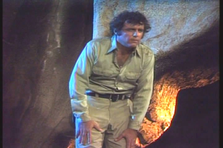One of the dinosaurs chases Will and Holly and they seek refuge inside a pylon. They notice the inside of the pylon is dark.
