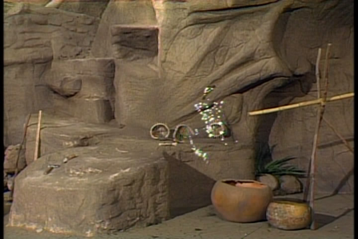 Chaka had thrown a bowl into the forest. He goes to get it, but it keeps moving out of reach due to the Zarn's telekinesis.