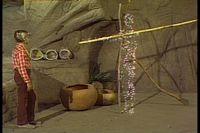 The cave is getting to be quite homey. Rick and Will are going on a mapping expedition, and Holly wants to stay alone in the cave. Rick says she can stay, but only if Chaka stays with her.