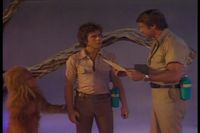 Malak had stolen a small cannon and some gunpower, and Jack and Will plan to give the Sleestaks who are outside a surprise. They fire the cannon (using only gunpower; no shot), the Sleestaks run off, and then take back the other stuff from the ship and leave.