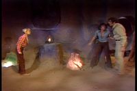Walter Koenig does a commentary track for this episode. He wrote the episode in 1974. It was only the second or third script that he had sold. He wanted to show the two kids arguing. Being an early episode, finding food was still a problem at the time in the storyline. He doesn't seem to care a lot for the look of the Sleestaks, although he says for kids they might appear ominous.