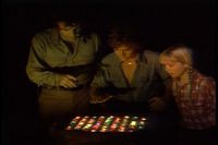 They get to the pylon, figuring that, if they press the crystals in the opposite order they did earlier, it will undo the weather problem. (Of course, their clothes are totally dry now, even though they were in a pond minutes before.)