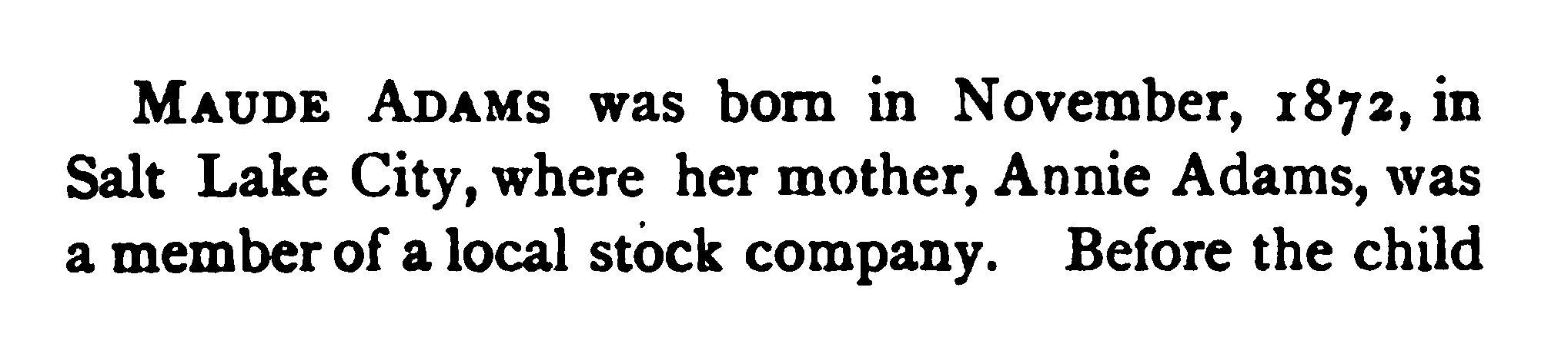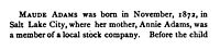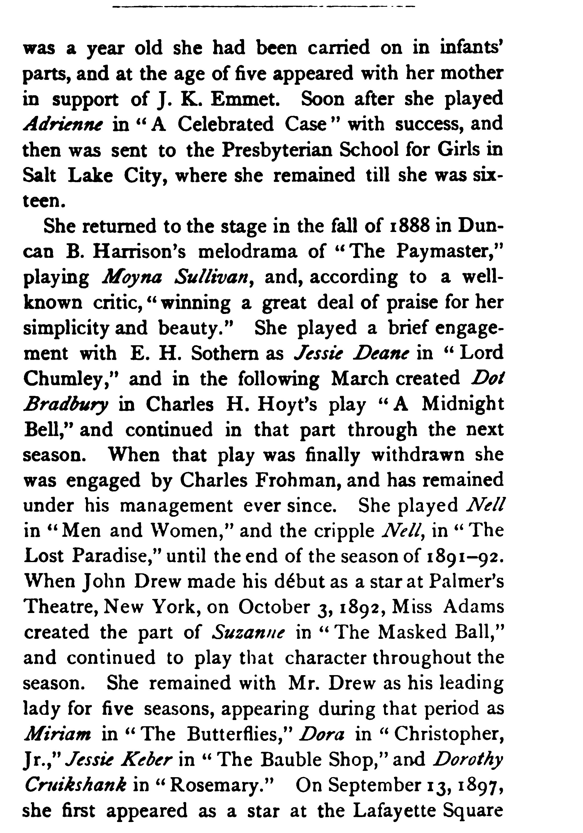 The book's section on Maude Adams. It includes a listing of many of the plays that she was in.