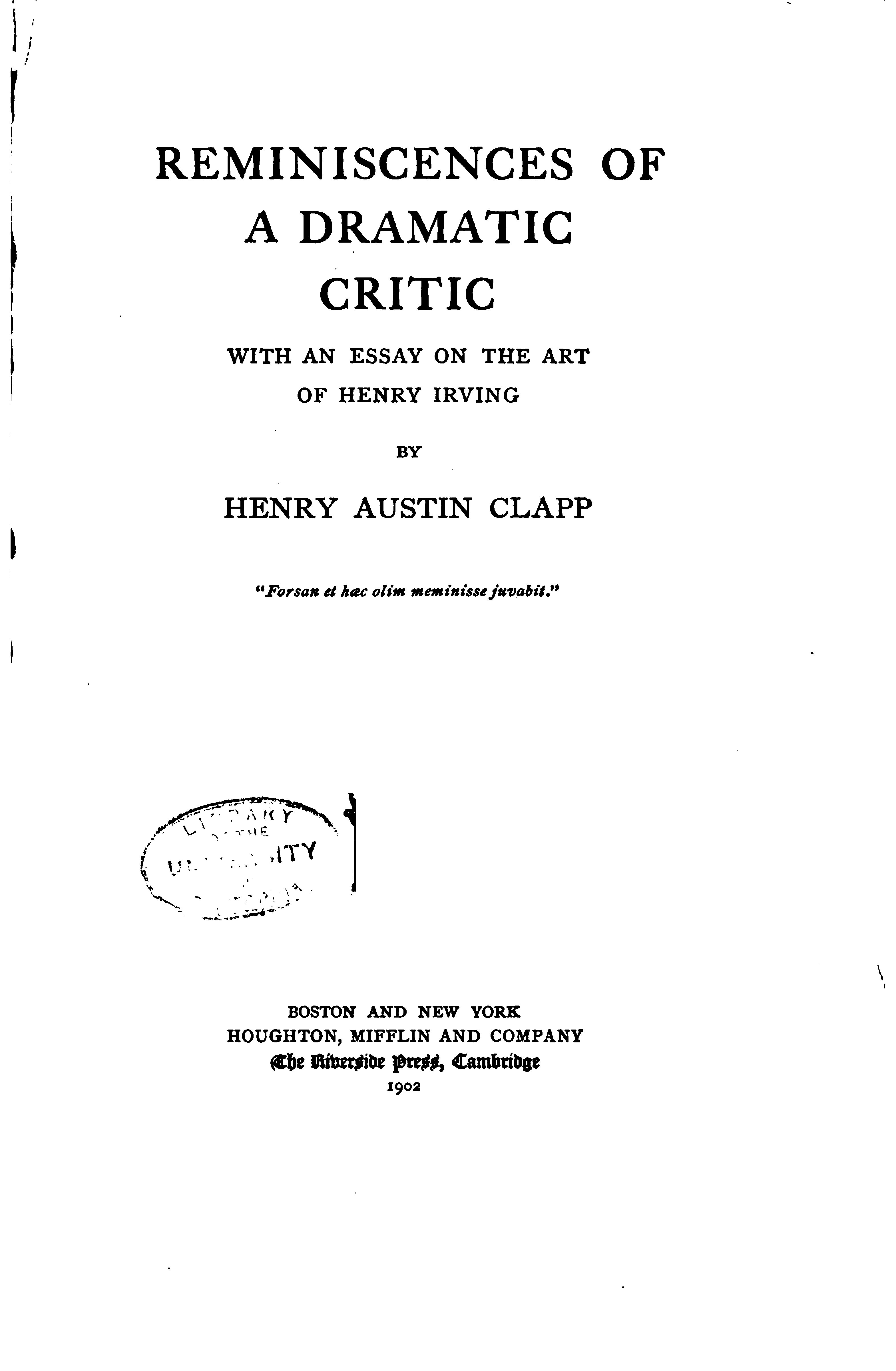 Reminiscences of a Dramatic Critic