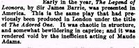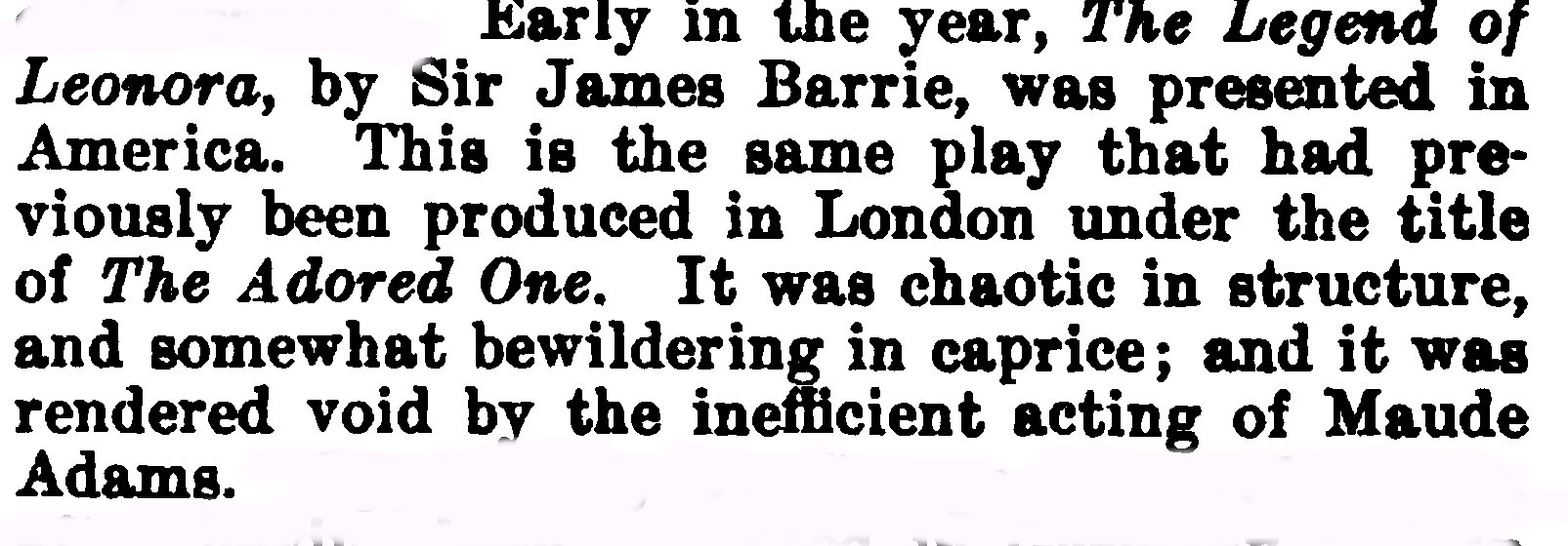 The writer talks about The Legend of Leonora. The writer says that Maude Adams' acting was “inefficient.”