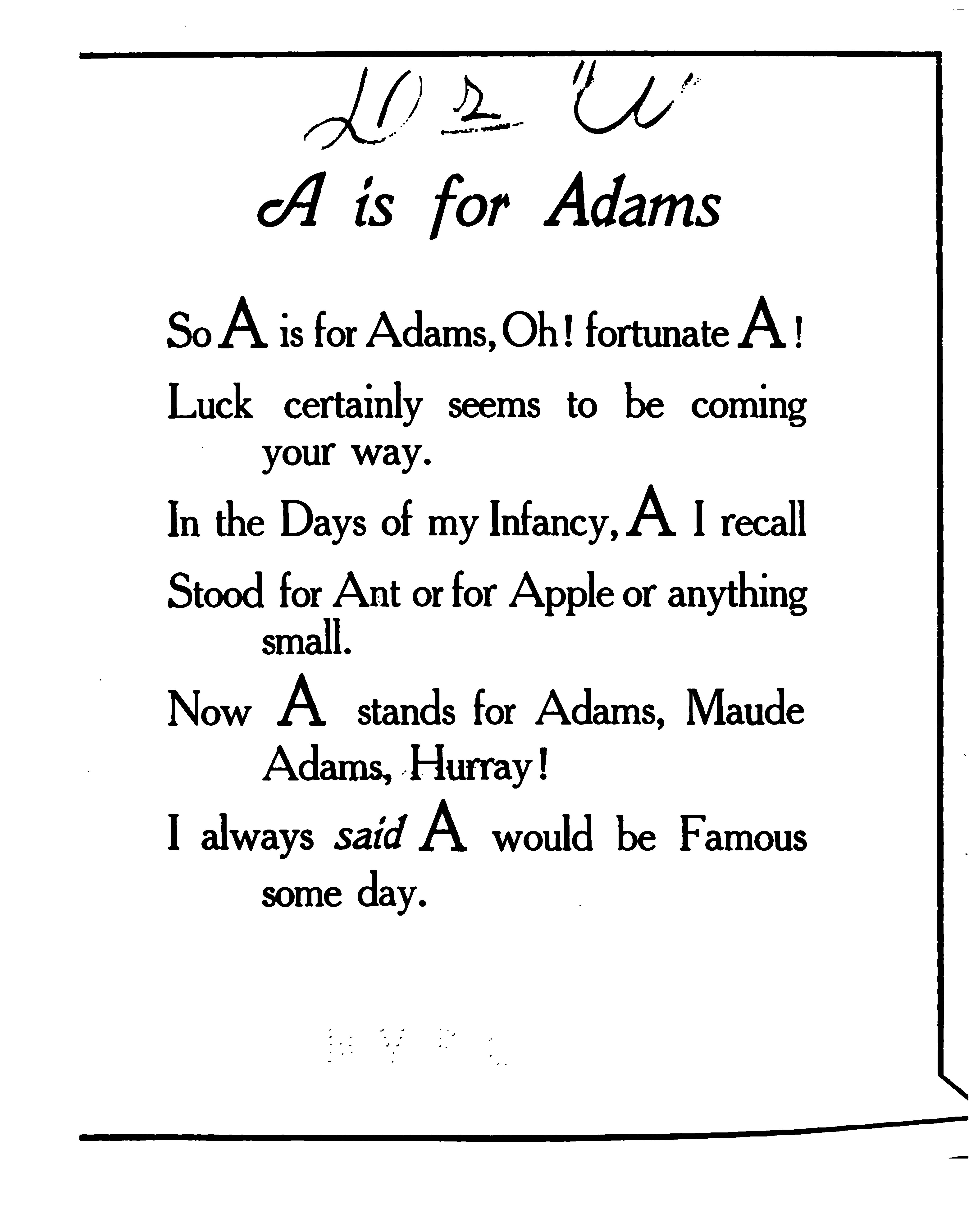 A children's alphabet book based on Peter Pan, and the letter A is dedicated to Maude Adams.