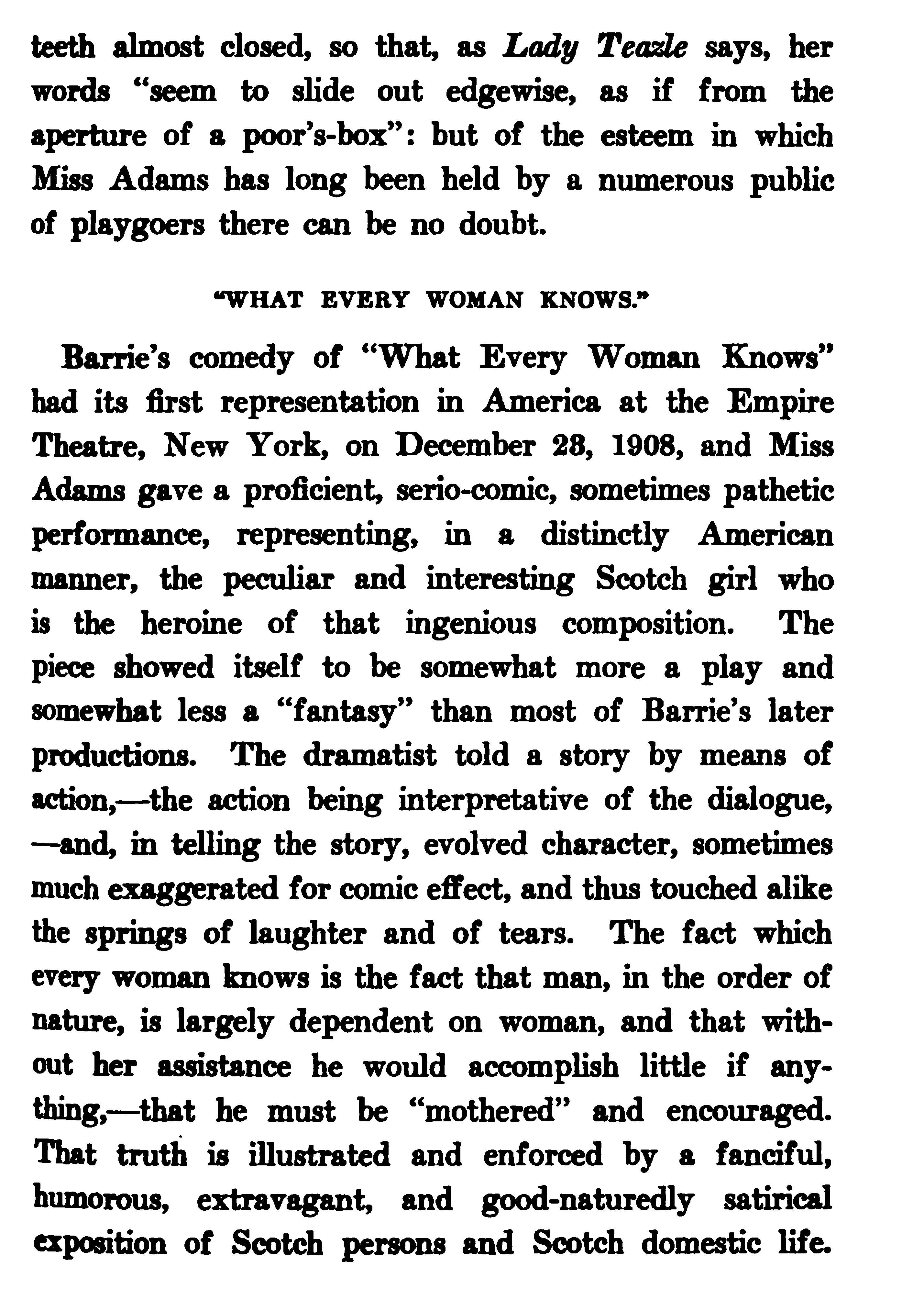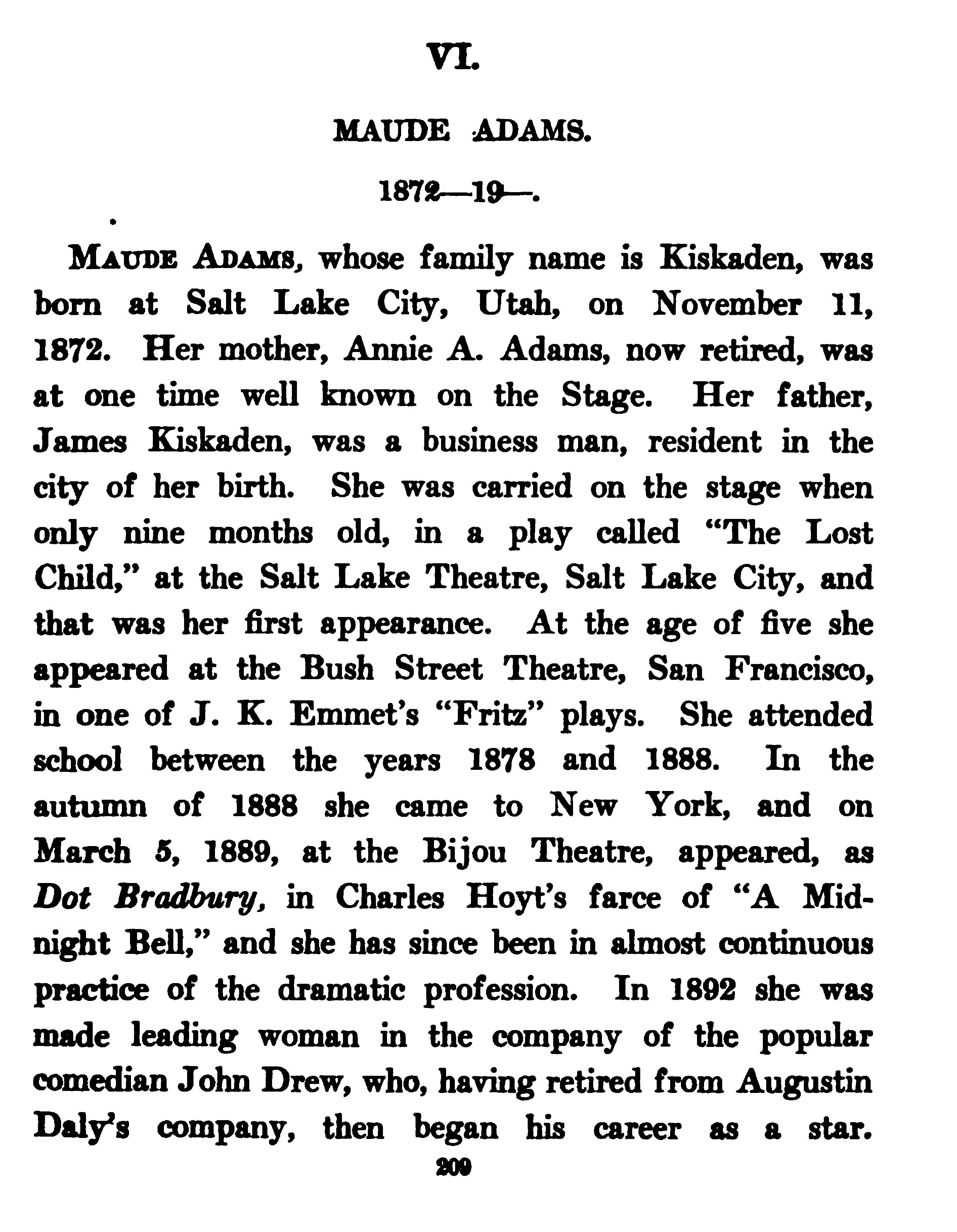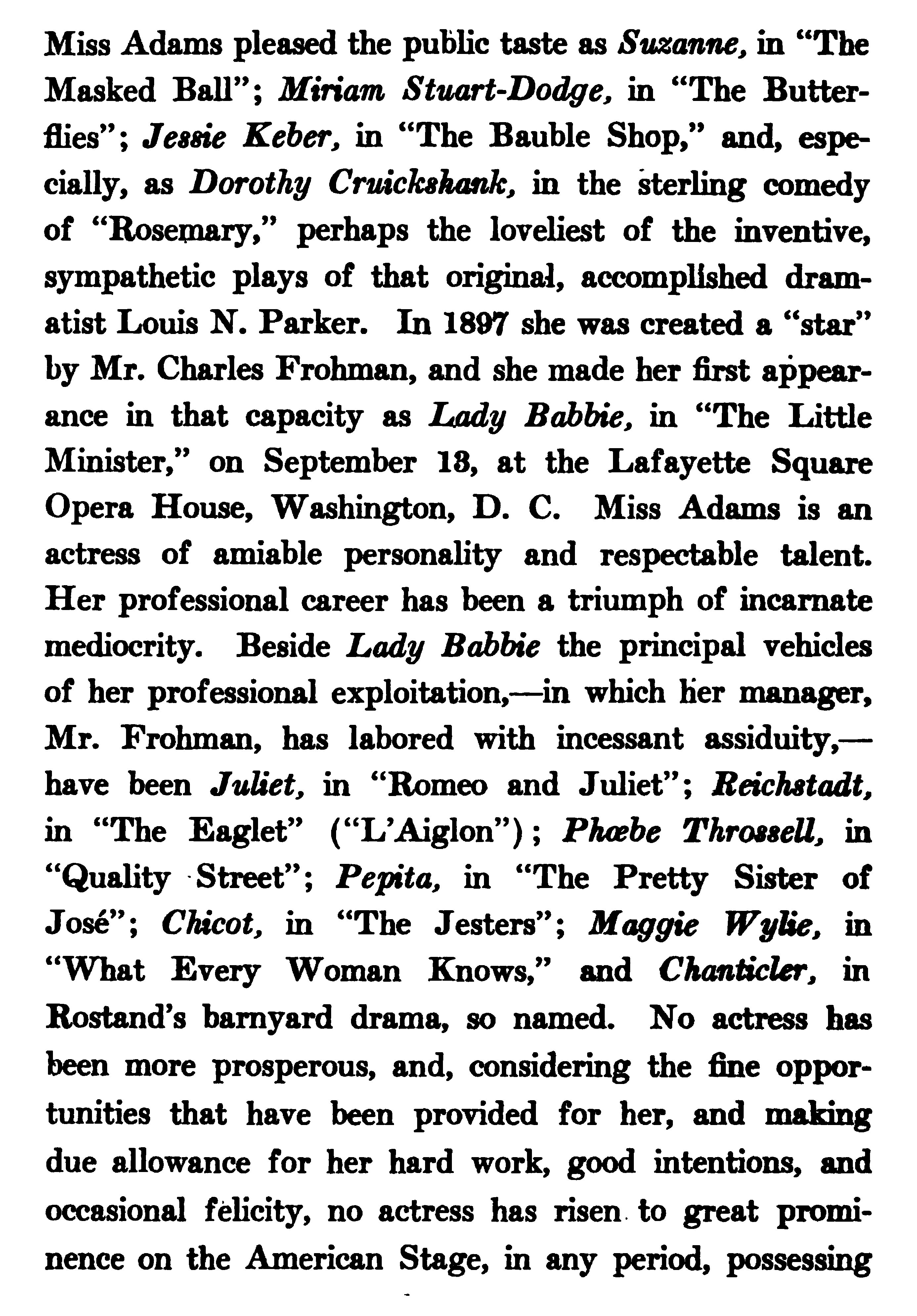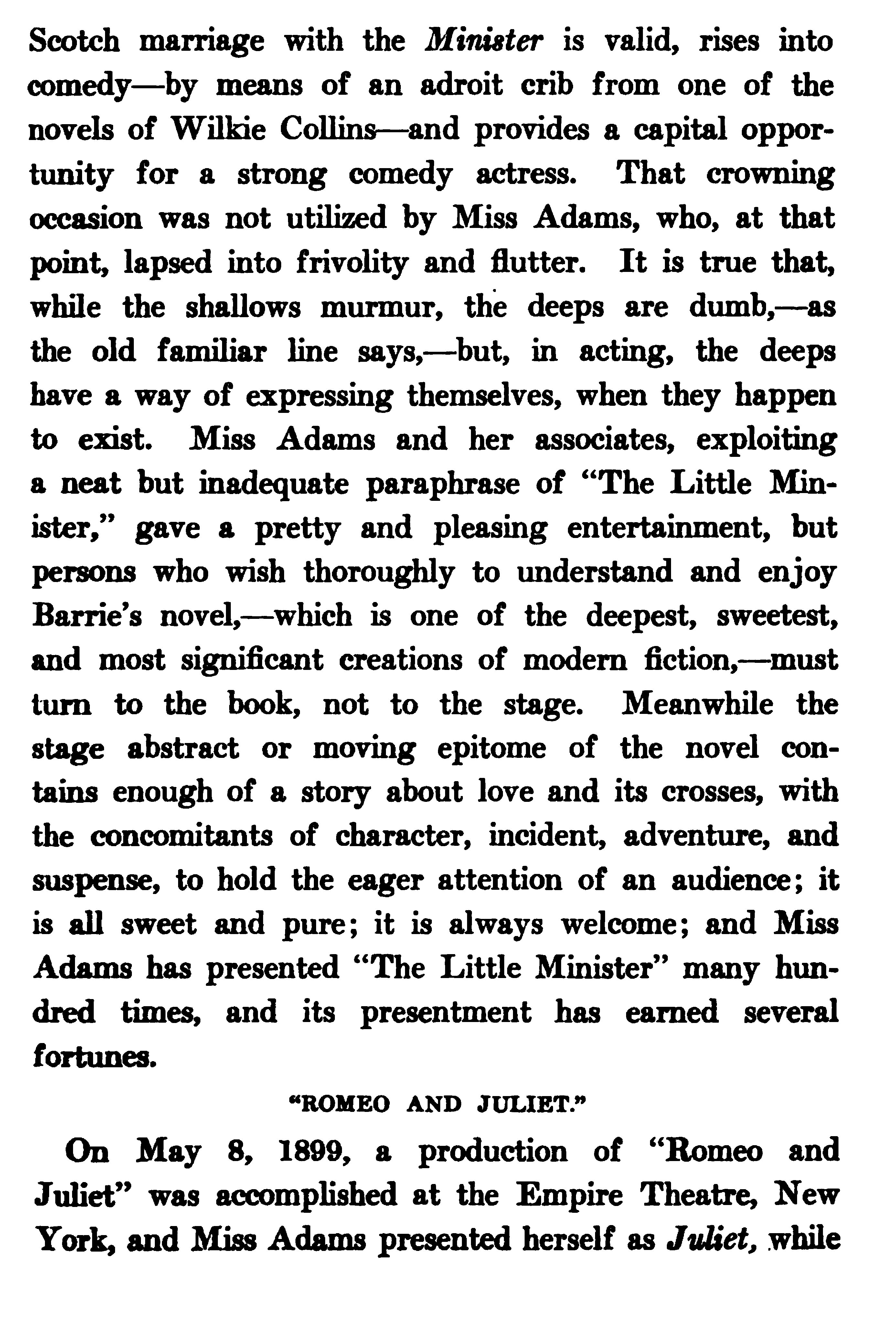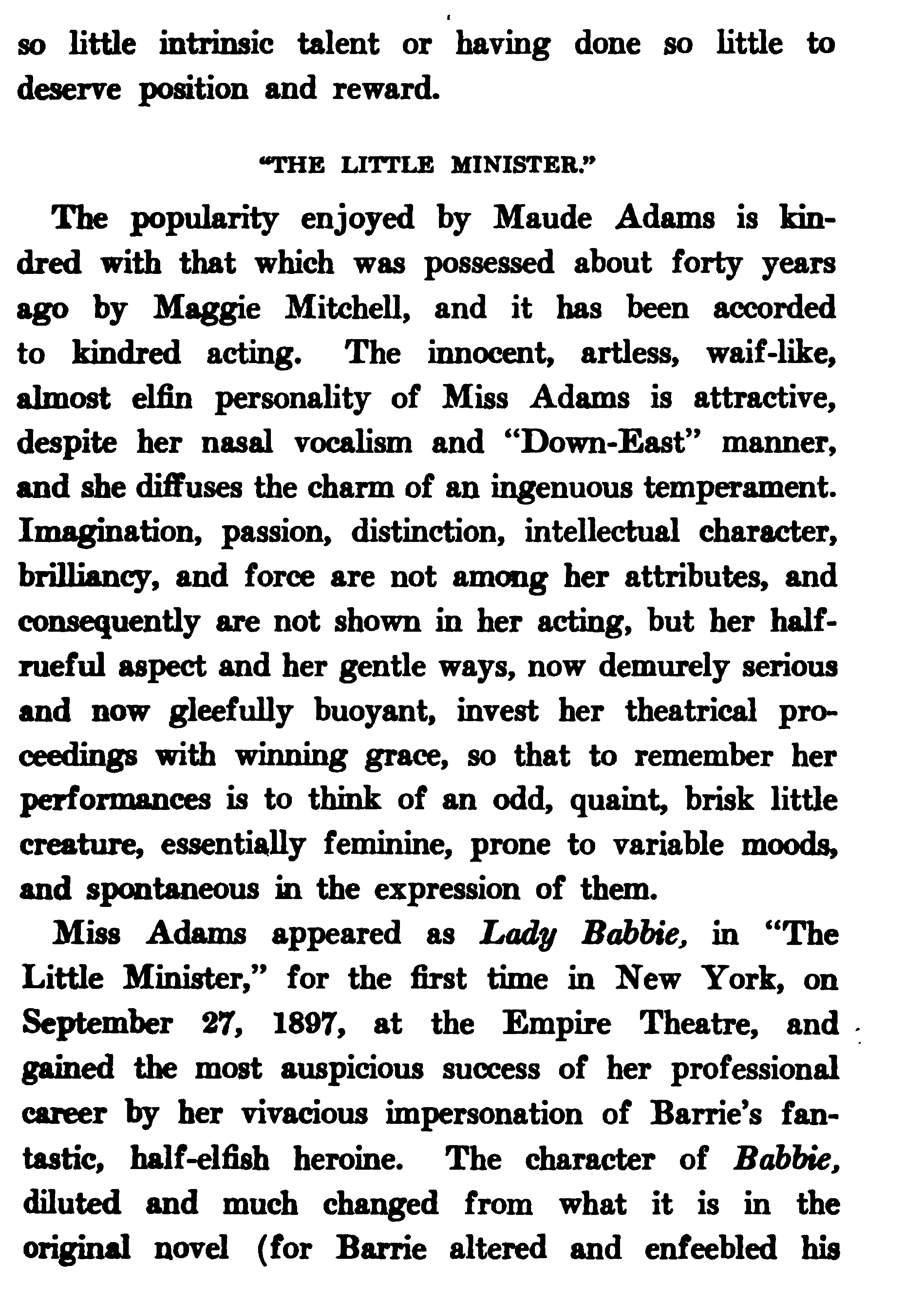 This book has an entire chapter on Maude Adams. It has a great deal of information on the various plays that she was in.