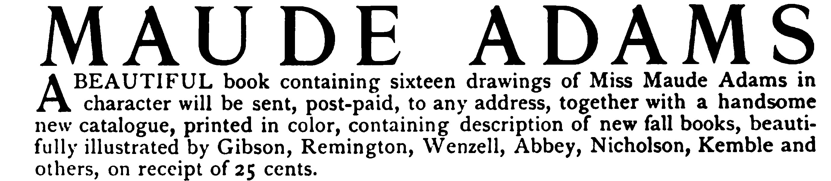 An add for a book with drawings of Maude Adams. This is the only reference I've ever seen to this book.