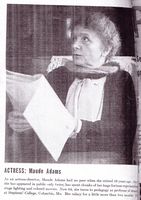 She dropped Aladdin in favor of producing Rudyard Kipling's Kim, on location in India. She became involved with testing the kodachrome process. The required capital could not be raised for the film. (Maude Adams, an American Idol: True Womanhood Triumphant in the Late-Nineteenth and Early-Twentieth Century Theatre, doctoral thesis, 1984, Eileen Karen Kuehnl)